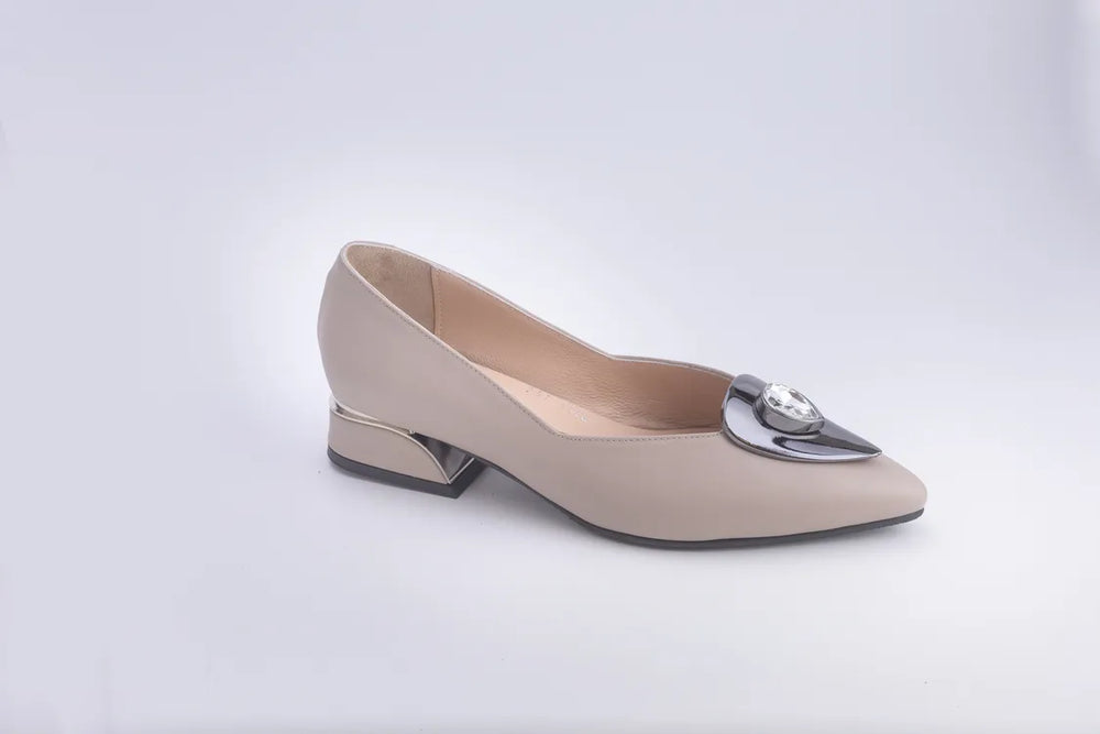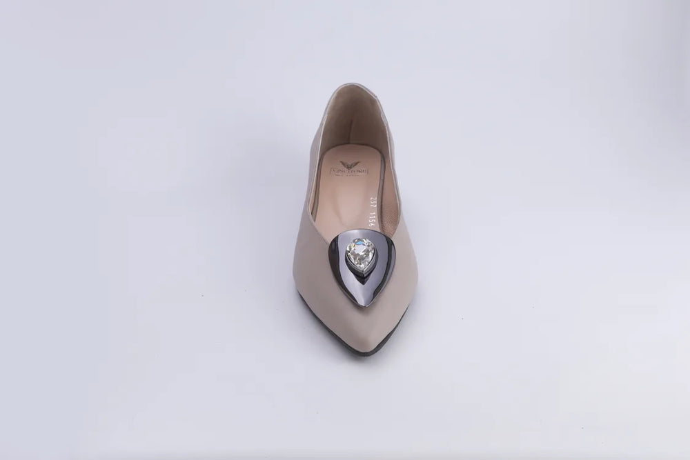Product Name: Vincitore Nude Pointed Toe Pumps with Teardrop Crystal Embellishment